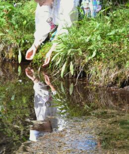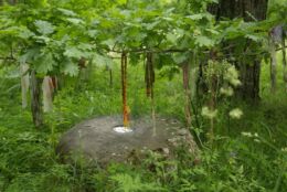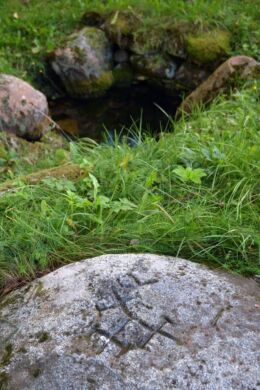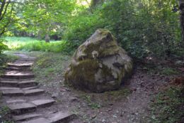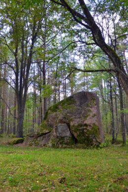 Harjumaa II hiieretk Keila kihelkonna pühapaikadesse. Humala Ristallikal esiplaanil püha kivi. Kuva Liisa Kaasik