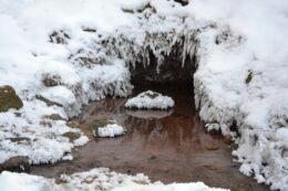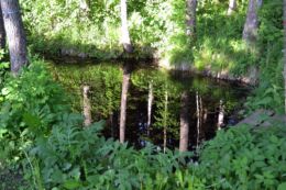 Saula Sini- ja Valgeallika vahel asub Mustallikas. 24.03.2019 olid nad suurvee all kõik üsna musta värvi.